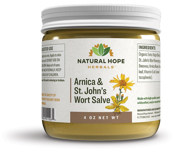 St. John’s Wort flowering tops, Arnica flower, Rosemary leaf.
