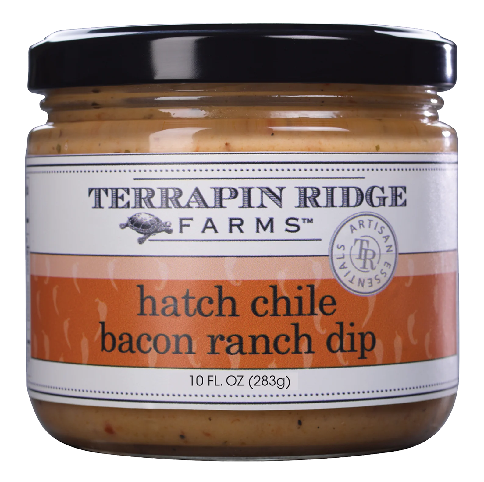 Roasted red bell pepper puree, Hatch Chile peppers and bacon are added to creamy ranch to create an insanely delicious bacon dip. Dip tortilla chips, veggies and finger foods in this amazing dip. Or, use as a condiment on a sandwich or atop grilled fish, chicken or pork. Gluten Free.