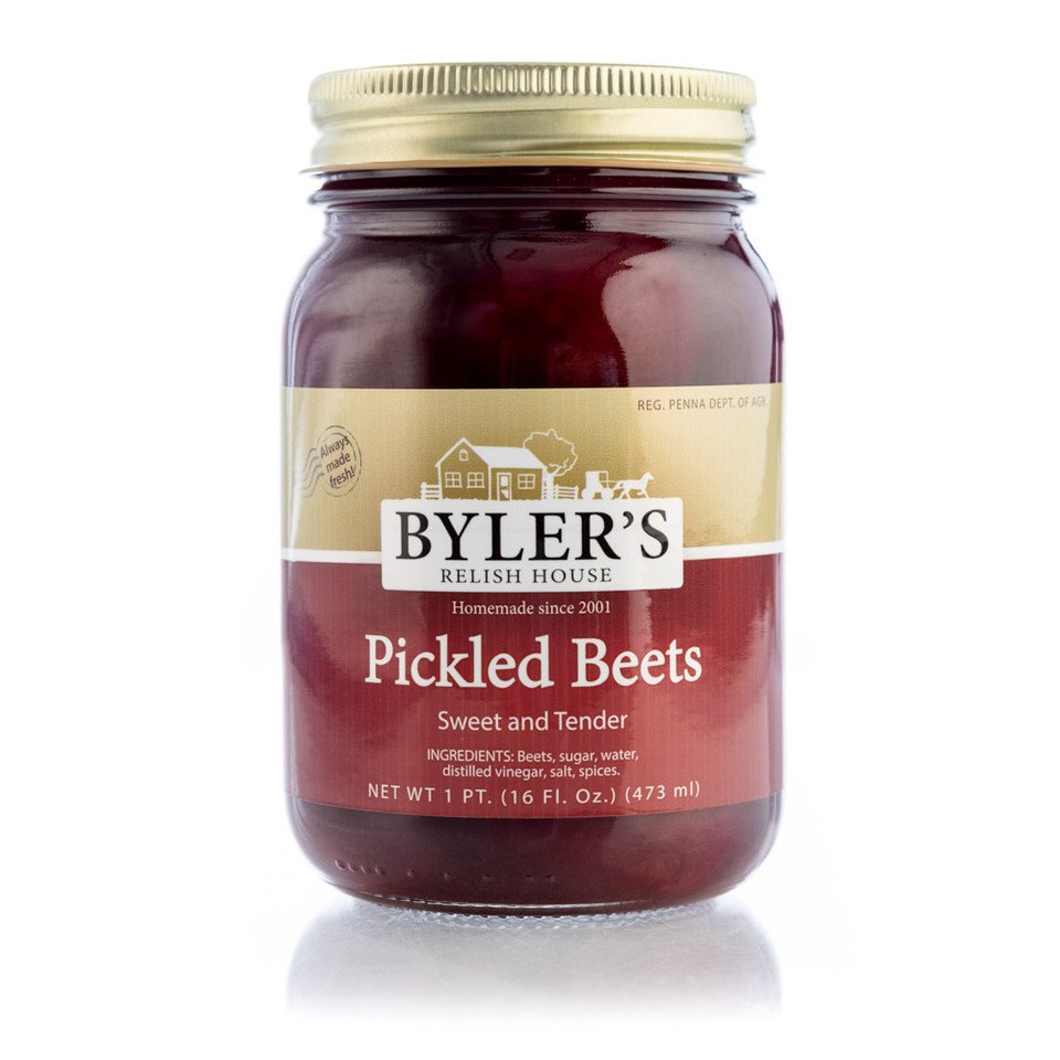 Byler’s Pickled Beets bring homestyle tradition to your table with a rich beet flavor balanced by a hint of cinnamon in the brine. Sweet, tangy, and earthy all at once, they make a tasty side dish, pair beautifully with salads, or can be enjoyed straight from the jar. Packed with iron and made in small batches from garden-fresh ingredients, these beets have the same homemade taste that Byler’s has been known for since the beginning.