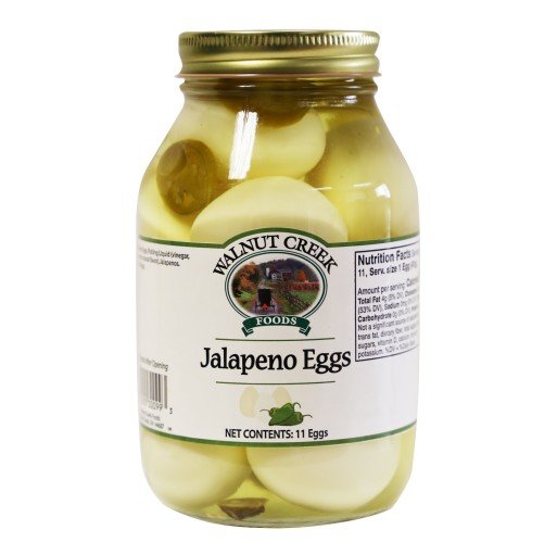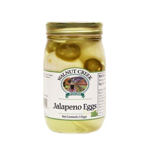 Ingredients: Eggs, pickling liquid (vinegar, sugar, water, natural flavor), jalapenos.
